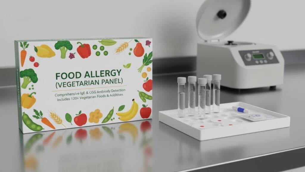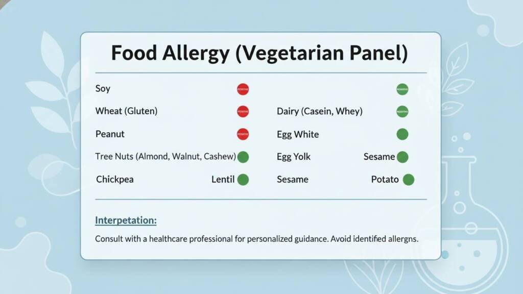 This test detects IgE-mediated allergic reactions to commonly consumed vegetarian food items. It helps identify foods that may cause symptoms such as itching, rashes, swelling, stomach upset, or breathing difficulty.