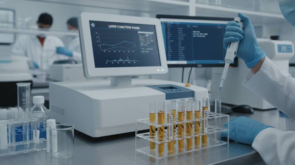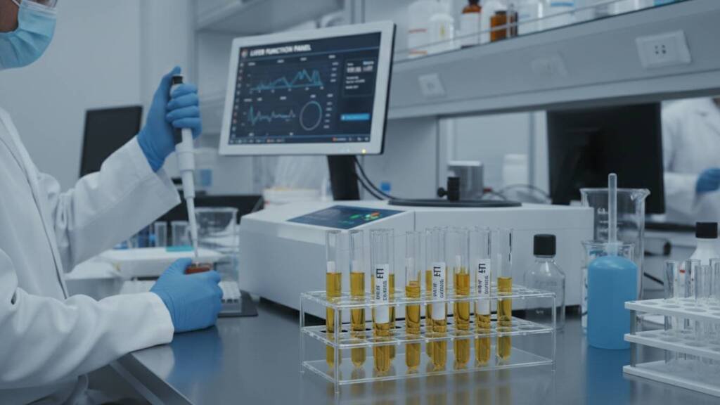 A comprehensive test that evaluates the overall health of the liver. It measures various enzymes, proteins, and substances in the blood to detect liver disease, inflammation, or damage.