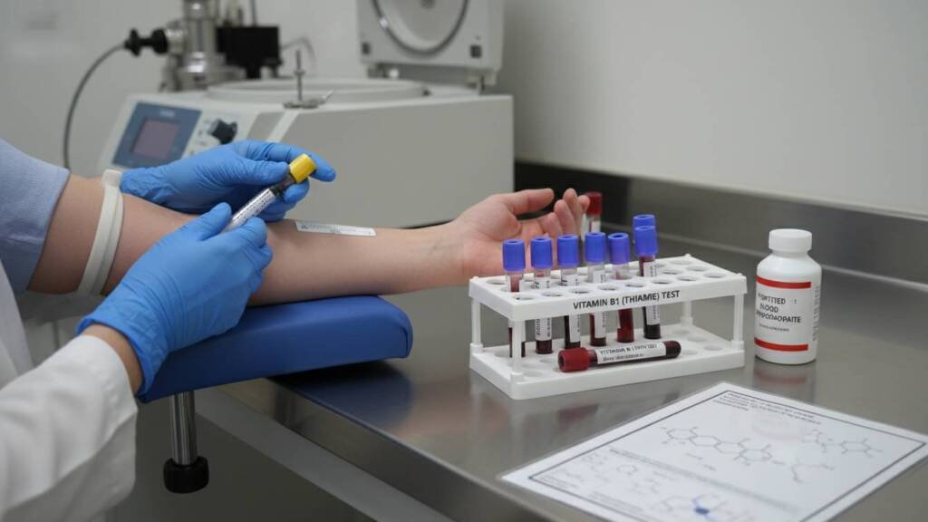 This test measures the level of Vitamin B1 (Thiamine) in the blood. Vitamin B1 is important for nerve function, muscle activity, and energy metabolism. Deficiency may cause nerve damage, weakness, fatigue, memory problems, and heart-related issues. This test helps assess nutritional status and neurological health.